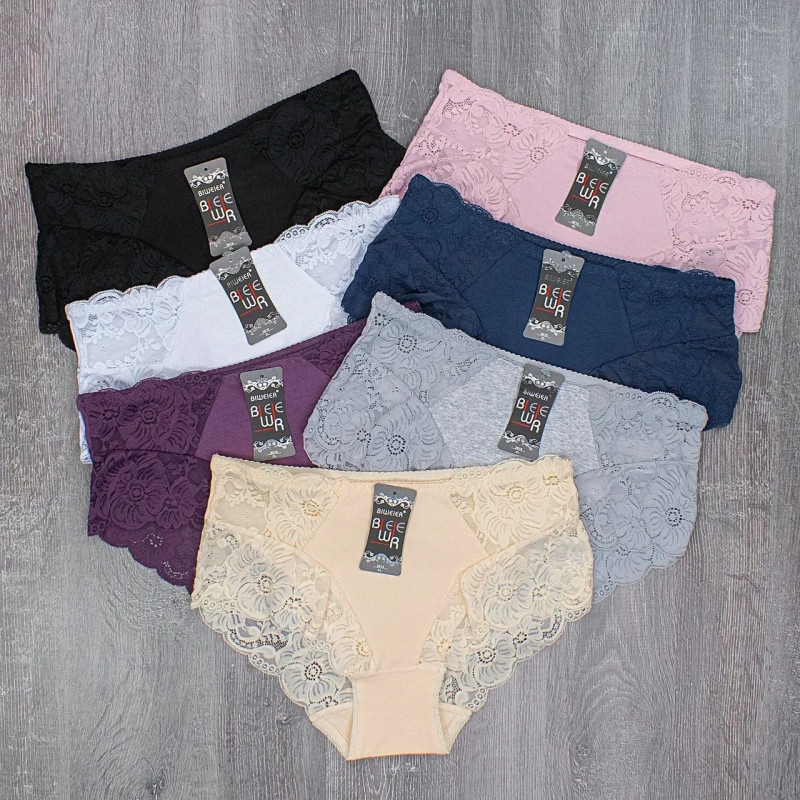 Жіночі бавовняні труси сліп з мереживом середня посадка Biweier (великі розміри) 3XL — Жіночі труси для повного комфорту у збільшених розмірах. Колір: Мікс кольорів. Склад: Бавовна 95%, Еластан 5%. Виробник: Biweier.