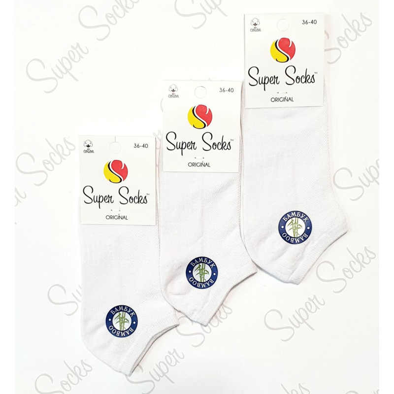 Жіночі білі короткі бамбукові шкарпетки з сіткою Super Socks — Жіночі шкарпетки з бамбукового волокна. Колір: Білий. Склад: Бамбук 70%, Поліамід 27%, Еластан 3%. Виробник: Super Socks.