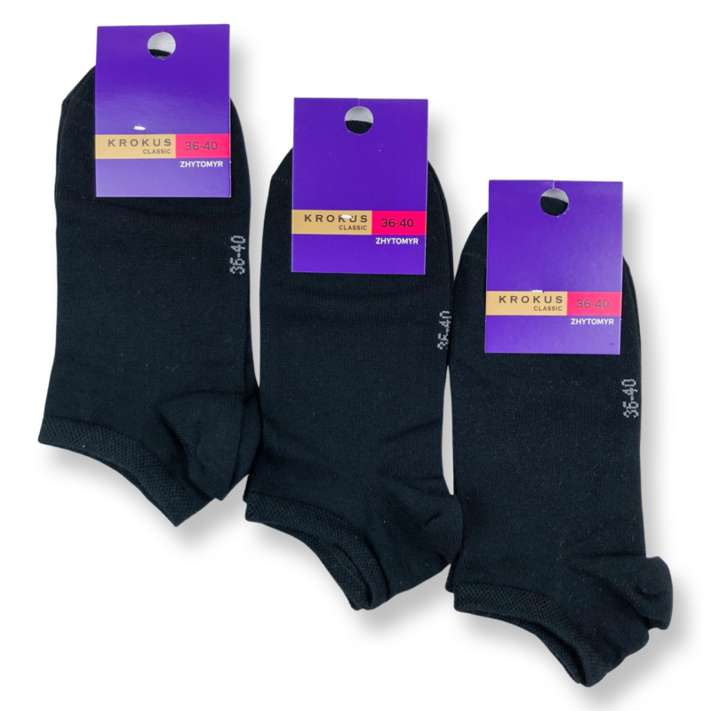 Жіночі короткі шкарпетки бавовна чорного кольору Krokus — Жіночі шкарпетки для щоденного носіння. Колір: Чорний. Склад: Бавовна 80%, Поліамід 18%, Еластан 2%. Виробник: KROKUS.