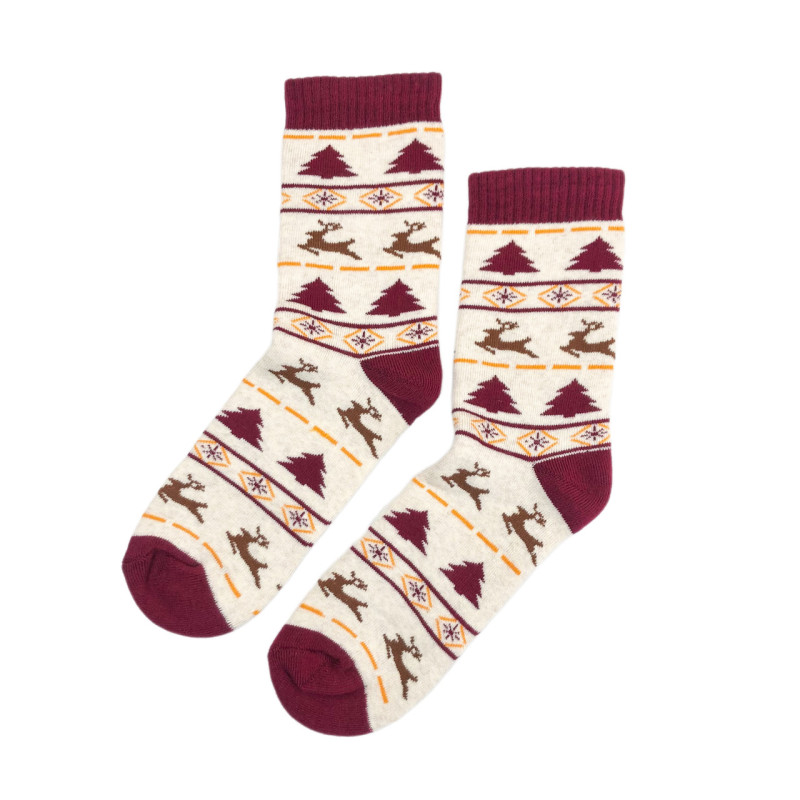 Жіночі махрові шкарпетки з оленями V&T — Жіночі шкарпетки для носіння в холодну пору року. Колір: Бордовий. Склад: Бавовна 80%, Поліамід 18%, Еластан 2%. Виробник: VT Computers.