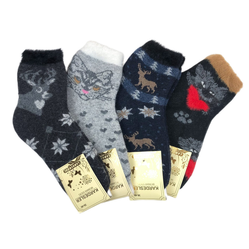 Жіночі махрові шкарпетки з овечої шерсті Kardesler Туреччина — Жіночі шкарпетки для носіння в холодну пору року. Колір: Мікс кольорів. Склад: Овечья Шерсть 80%, Поліамід 17%, Еластан 3%. Виробник: Kardesler Socks.
