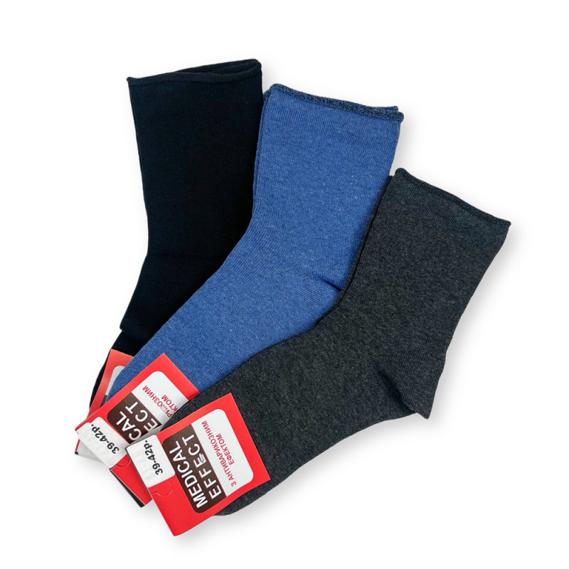 Жіночі медичні бавовняні шкарпетки без гумки асорті Medical Effect, 90% бавовна, розмір 39–42, упаковка 12 пар, Україна