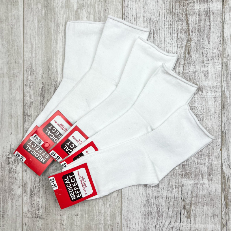 Жіночі медичні бавовняні шкарпетки без гумки білі Medical Effect, 90% бавовна, розмір 36–40, Україна