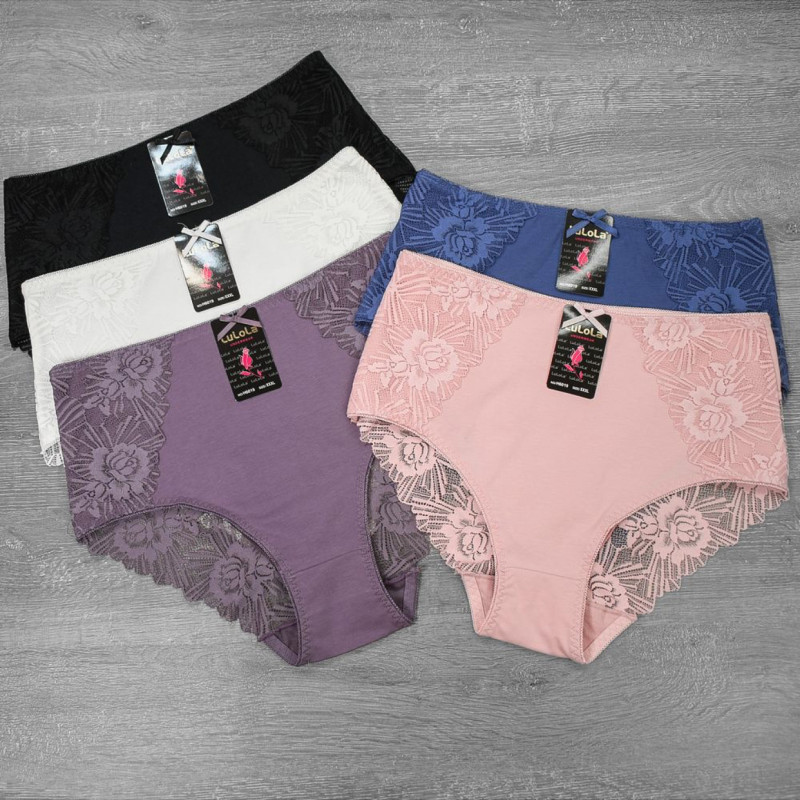 Жіночі мереживні труси сліп 95% бавовна LuLoLa (великі розміри) XL, Сливовий — Жіночі труси для повного комфорту у збільшених розмірах. Колір: Сливовий. Склад: Бавовна 95%, Еластан 5%. Виробник: LuLoLa.