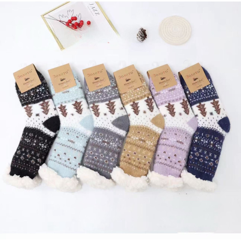 Жіночі норкові домашні шкарпетки на хутрі з гальмами ялинка Золото — Жіночі шкарпетки для носіння в холодну пору року. Колір: Мікс кольорів. Склад: Акрил 75%, Поліестер 25%. Виробник: Золото.
