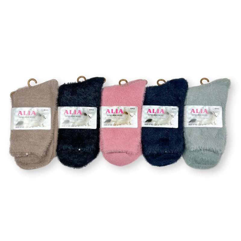 Жіночі норкові шкарпетки Alia мікс кольорів — Жіночі шкарпетки для носіння в холодну пору року. Колір: Мікс кольорів. Склад: Вовна Норки 80%, Поліамід 15%, Еластан 5%. Виробник: Alia.