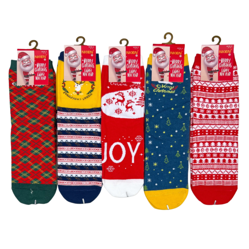 Жіночі новорічні яскраві шкарпетки Nicen — Жіночі шкарпетки з тематичними малюнками до зимових свят. Колір: Мікс кольорів. Склад: Бавовна 80%, Еластан 15%, Поліамід 5%. Виробник:.