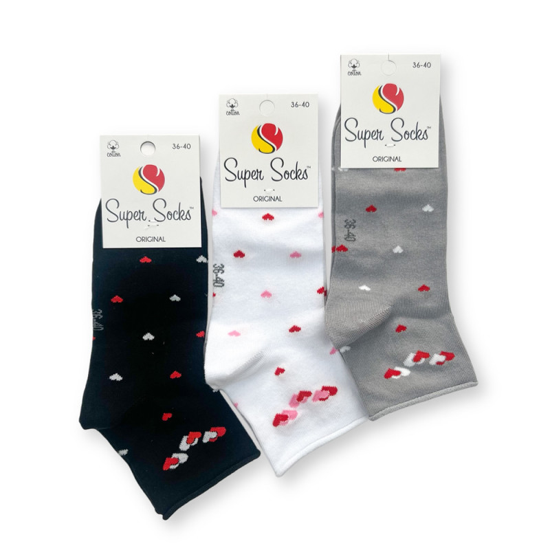 Жіночі шкарпетки без гумки з преміальної бавовни сердечка комплект з 3-х пар — Жіночі шкарпетки для носіння протягом усього дня. Колір: Мікс кольорів. Склад: Бавовна 75%, Поліамід 23%, Еластан 2%. Виробник: Super Socks.