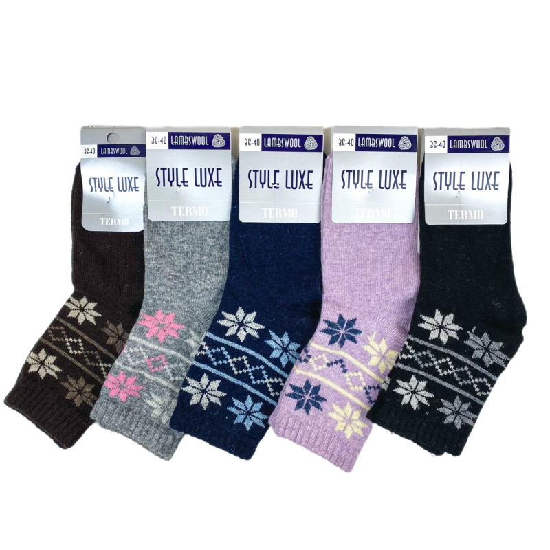 Жіночі вовняні шкарпетки з зимовим орнаментом Style Luxe, 85% овеча вовна, розмір 36–40, Україна