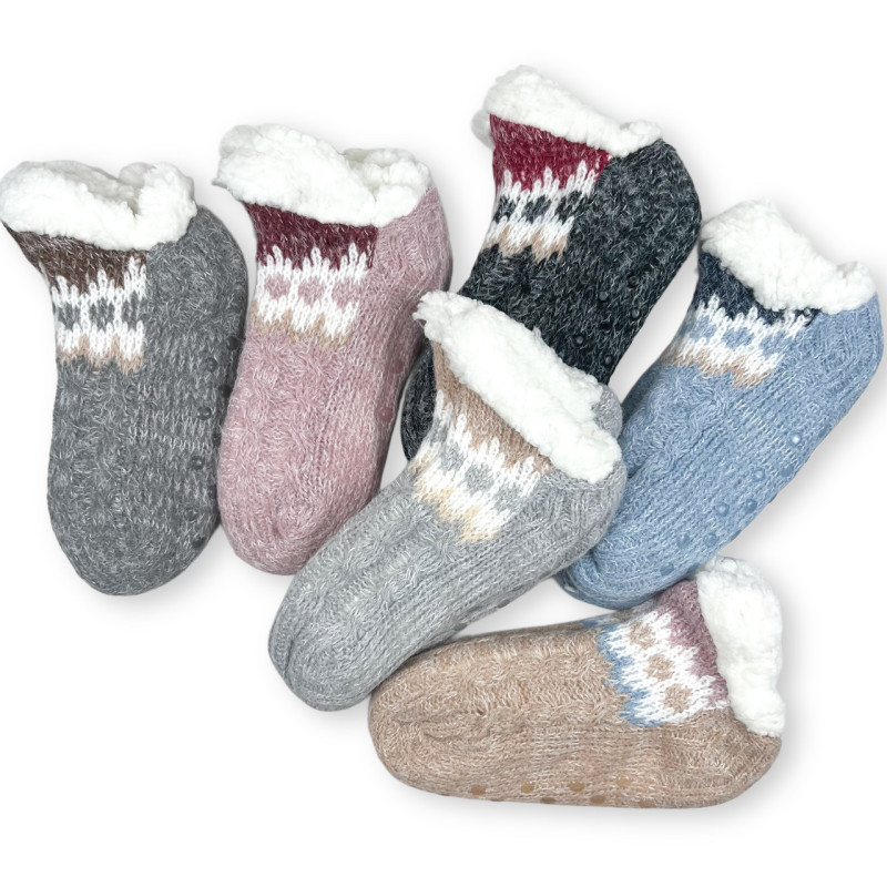 Жіночі теплі короткі шкарпетки на хутрі з гальмами Світло-сірий — Жіночі шкарпетки для носіння в холодну пору року. Колір: Світло-сірий. Склад: Акрил 50%, Поліестер 45%, Еластан 5%. Виробник: Без бренду.