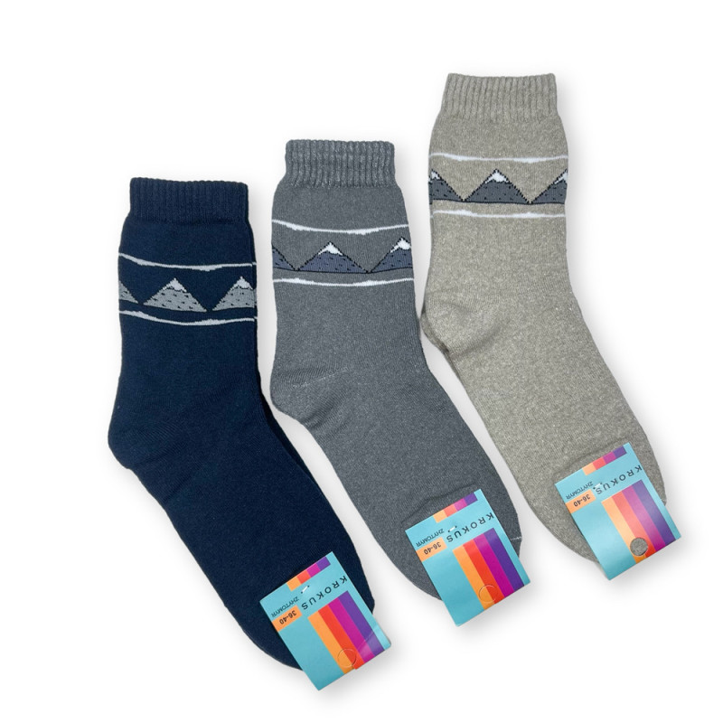 Жіночі теплі махрові шкарпетки Krokus (гори) — Жіночі шкарпетки для носіння в холодну пору року. Колір: Мікс кольорів. Склад: Бавовна 80%, Поліамід 18%, Еластан 2%. Виробник: STYLE LUXE.