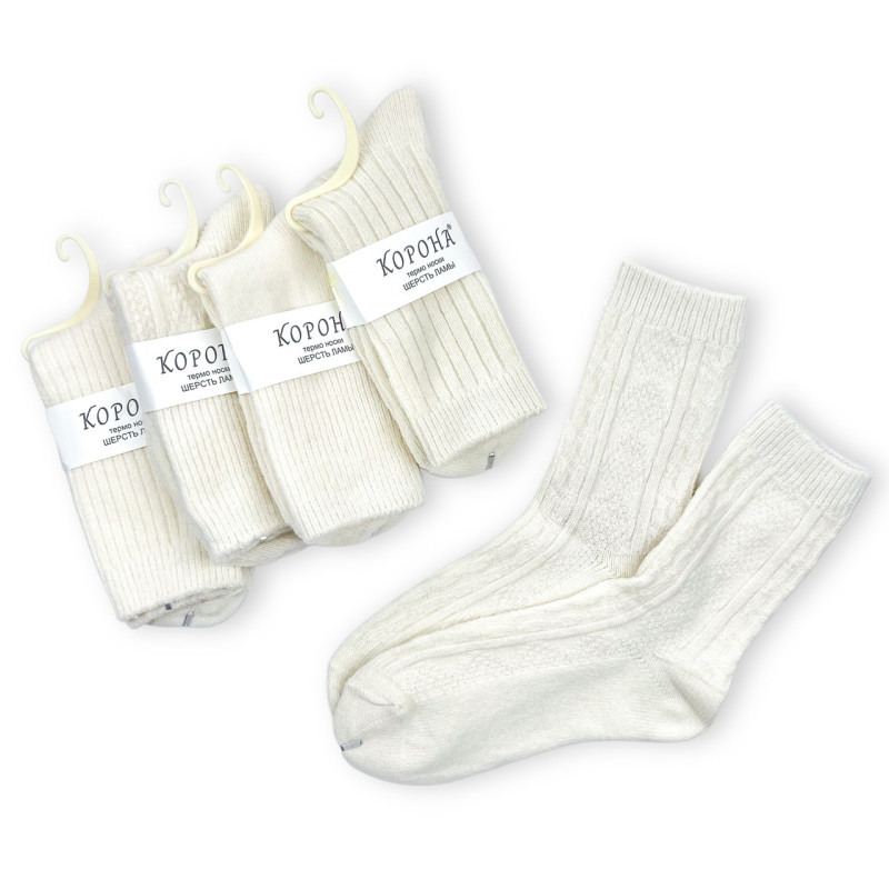 Жіночі теплі шкарпетки з вовни лами високі молочні Корона, 85% вовна лами, розмір 35–40, Китай