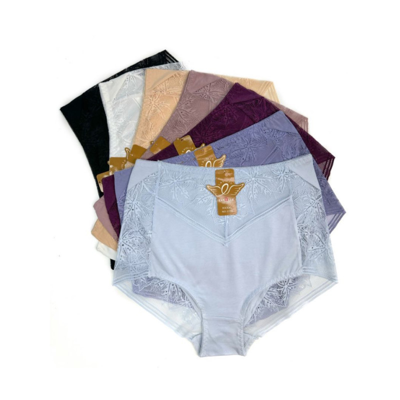 Жіночі труси сліпи з мереживом висока посадка (великі розміри) Lavolle 4XL — Жіночі труси для повного комфорту у збільшених розмірах. Колір: Мікс кольорів. Склад: Бавовна 47%, Район 47%, Еластан 6%. Виробник: Lavolle.