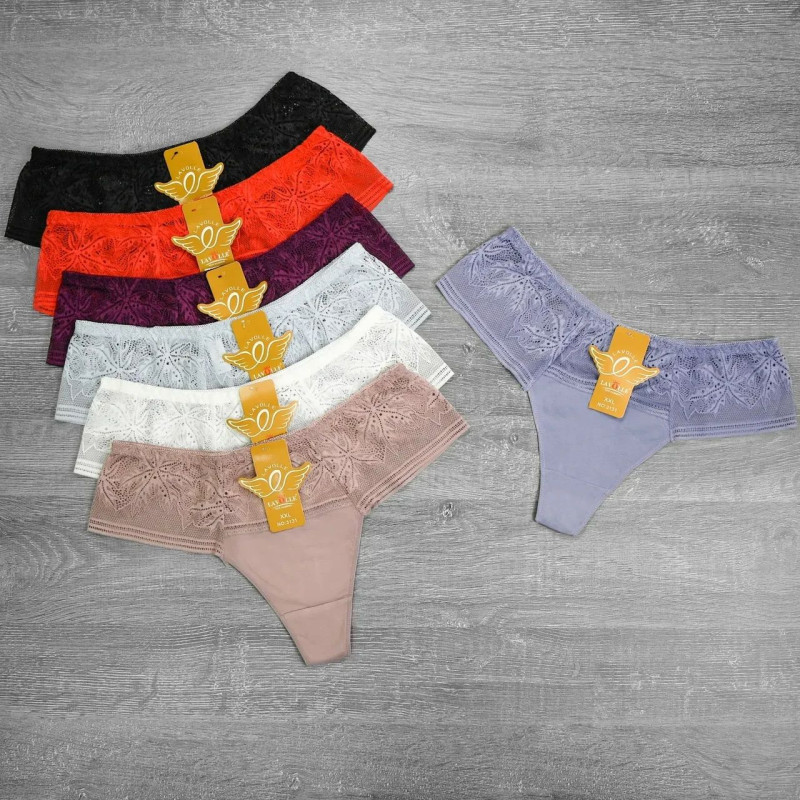 Жіночі труси стрінги з декоративним мереживом Lavolle M — Жіночі труси мінімального крою для носіння під облягаючий одяг. Колір: Мікс кольорів. Склад: Бавовна 47%, Район 47%, Еластан 6%. Виробник: Lavolle.
