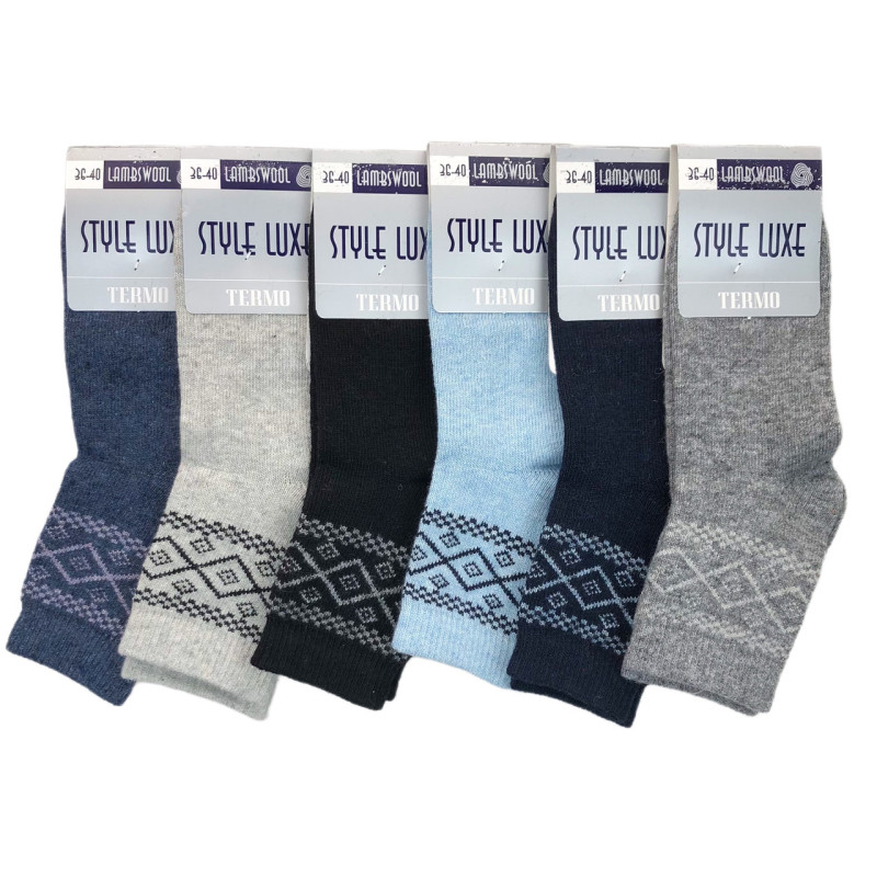 Жіночі вовняні зимові шкарпетки Style Luxe (орнамент) — Жіночі шкарпетки для носіння в холодну пору року. Колір: Мікс кольорів. Склад: Вовна 85%, Поліамід 10%, Еластан 5%. Виробник: STYLE LUXE.