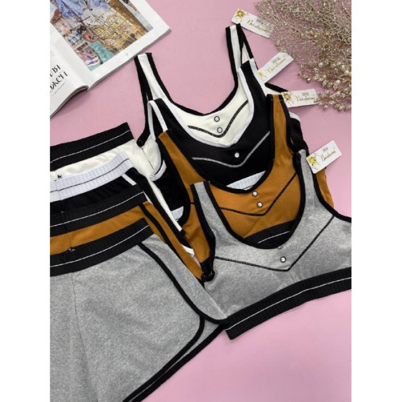 Жіночий спортивний копмлект (топ + шорти) Beisdanna Сірий — Жіноча білизна для тренувань та активного відпочинку. Колір: Сірий. Склад:. Виробник: Beisdanna.